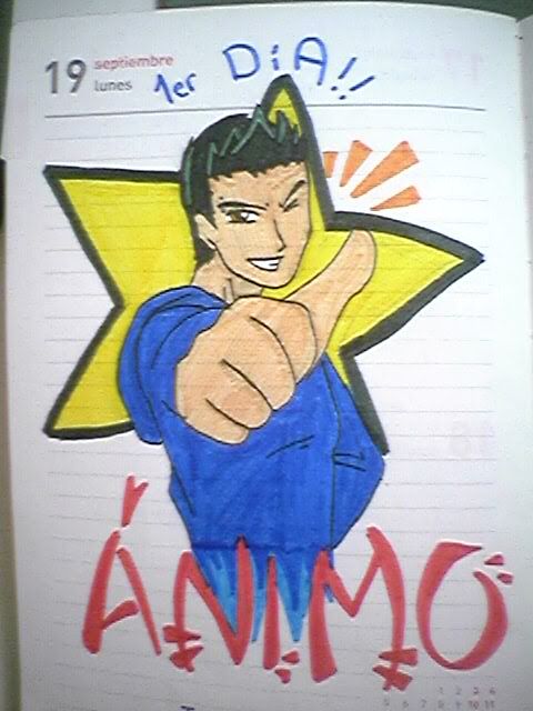 ····First school day picture(saying in English something like...hmmm"You can do it" or "cheer up")