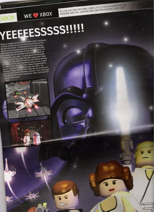 Also, I feel if this game is just like the original but with SERIOSLY cool extras (ie. a Death Star mode where you control the Death Star and blow up planets. Or a Create-A-Character mode etc) this game could be very nice. The original trilody was way better than the prequels and, this is highly unlikely, but if Lucas is planning to make VII, VIII & IX they could insclude a seacret level set at the first part of VII. That last bit is VERY unlikely though.